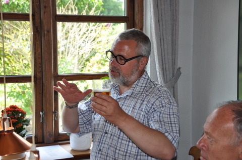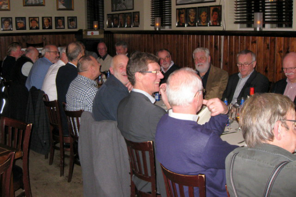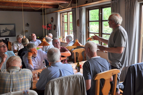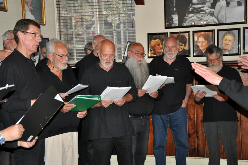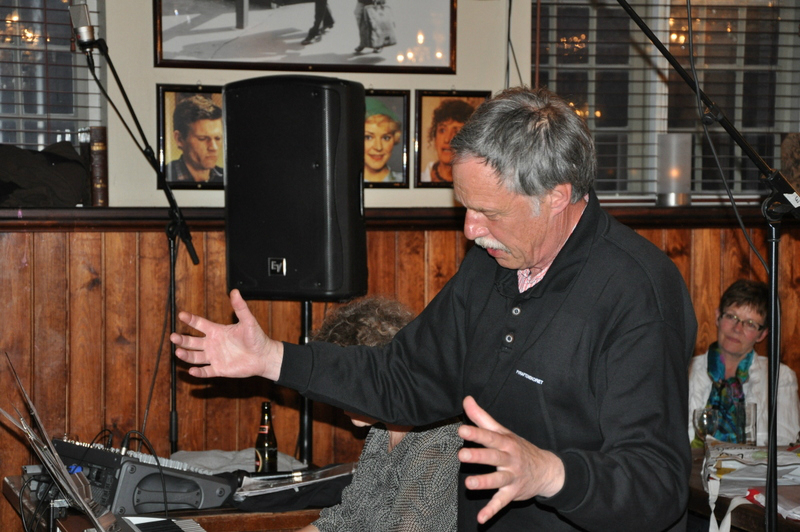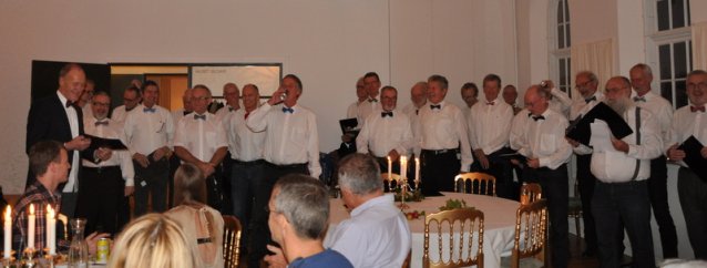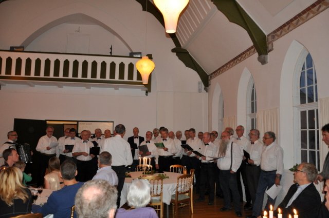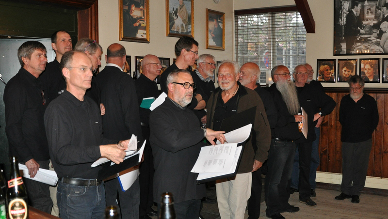 - Da alle er vel ankommet til kroen byder vor gode formand velkommen. Og straks begynder de kære kormedlemmer at fortælle uartige historier. Nu er de jo kommet hjemmefra.