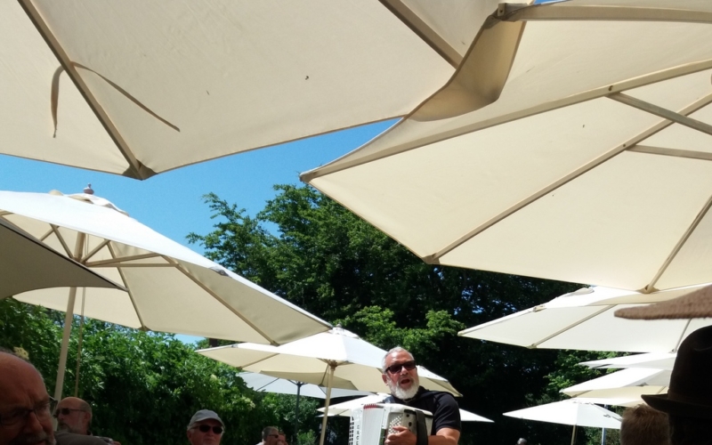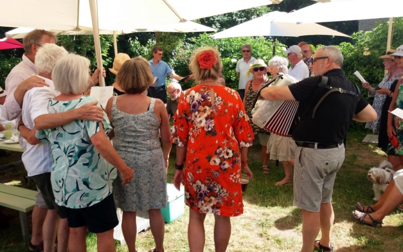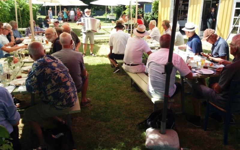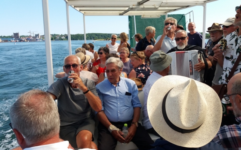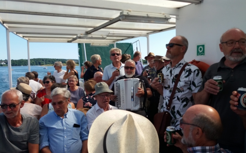 Endnu en gang gik vores sommerudflugt til Skarø. I år skulle dog ikke lave maden selv, men i stedet spise frokost hos Sommersild. Vejret var til det og vi startede selvfølgelig som vi plejer – en øl og en sang for de øvrige rejsende på færgen.